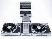 It works with specific vinyl records and CDs that don't hold any music, but instead give off audio signals to tell the DVS DJ software where on the record/CD the deck is playing at any time. This enables the computer to play the audio file from it's memory at the exact point in the track that the deck is playing the record or CD.